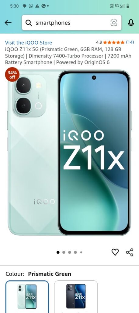 📱 iQOO Z11x 5G (6GB + 128GB) — Detailed Review & Ratings